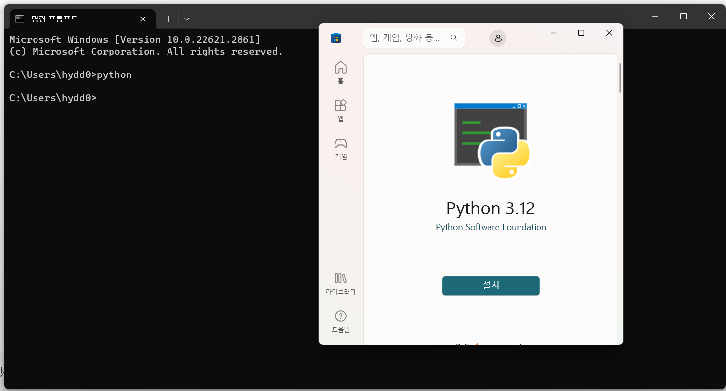 2) Microsoft Store 자동 실행 되며 Python 3.12 (2024.01월 기준) 다운로드 가능